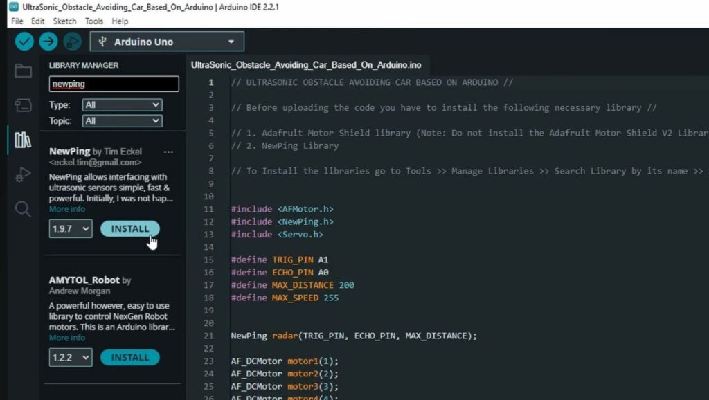 - NewPing Library.