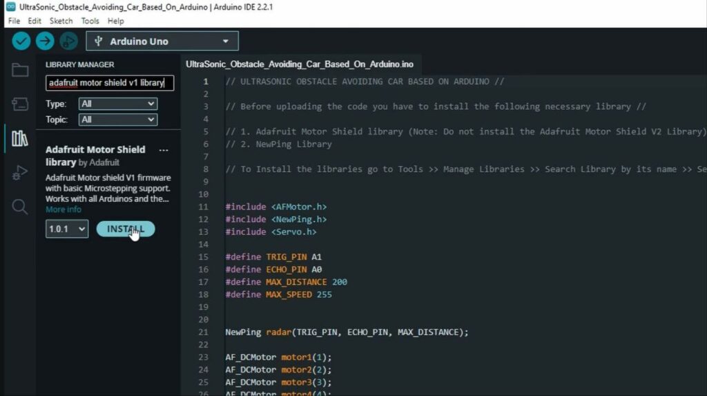 - Before uploading the code, You’ll need to install two libraries: