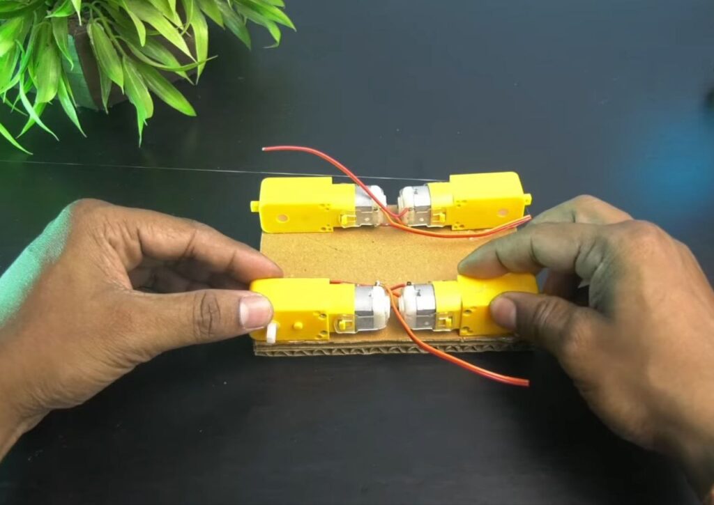 - Attach the Wheels: Press the wheels onto the motor shafts.