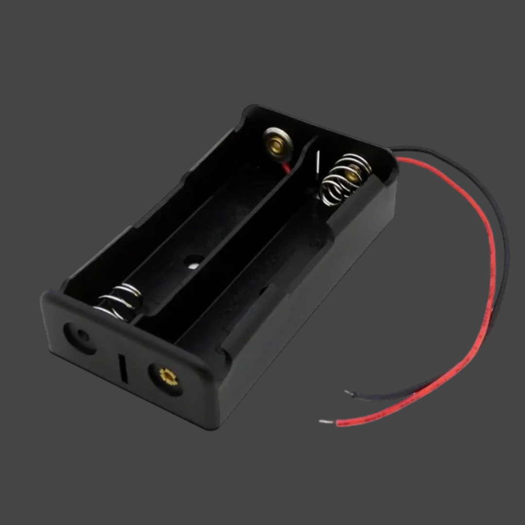 Power up your projects securely with the 18650 Lithium-Ion 2-Cell Battery Holder. Designed for seamless use with two standard 18650 batteries, this holder features sturdy construction, solid insulation and pre-soldered leads—making installation and connection a breeze. Perfect for Arduino robots, wireless gadgets and mobile electronics, it offers stable voltage output and keeps your batteries protected and firmly in place. This essential accessory is ideal for both portable, on-the-move robots and stationary devices requiring dependable DC power.